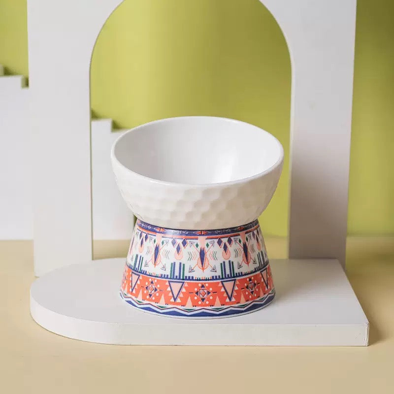 Boho Tilted Elevated Ceramic Pet Bowl for Cats and Small Dogs