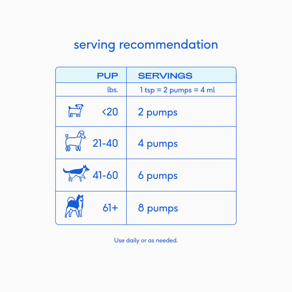 A rich, silky drizzle of salmon + pollock oil that makes every meal irresistible. Guaranteed tail wags with every pump.